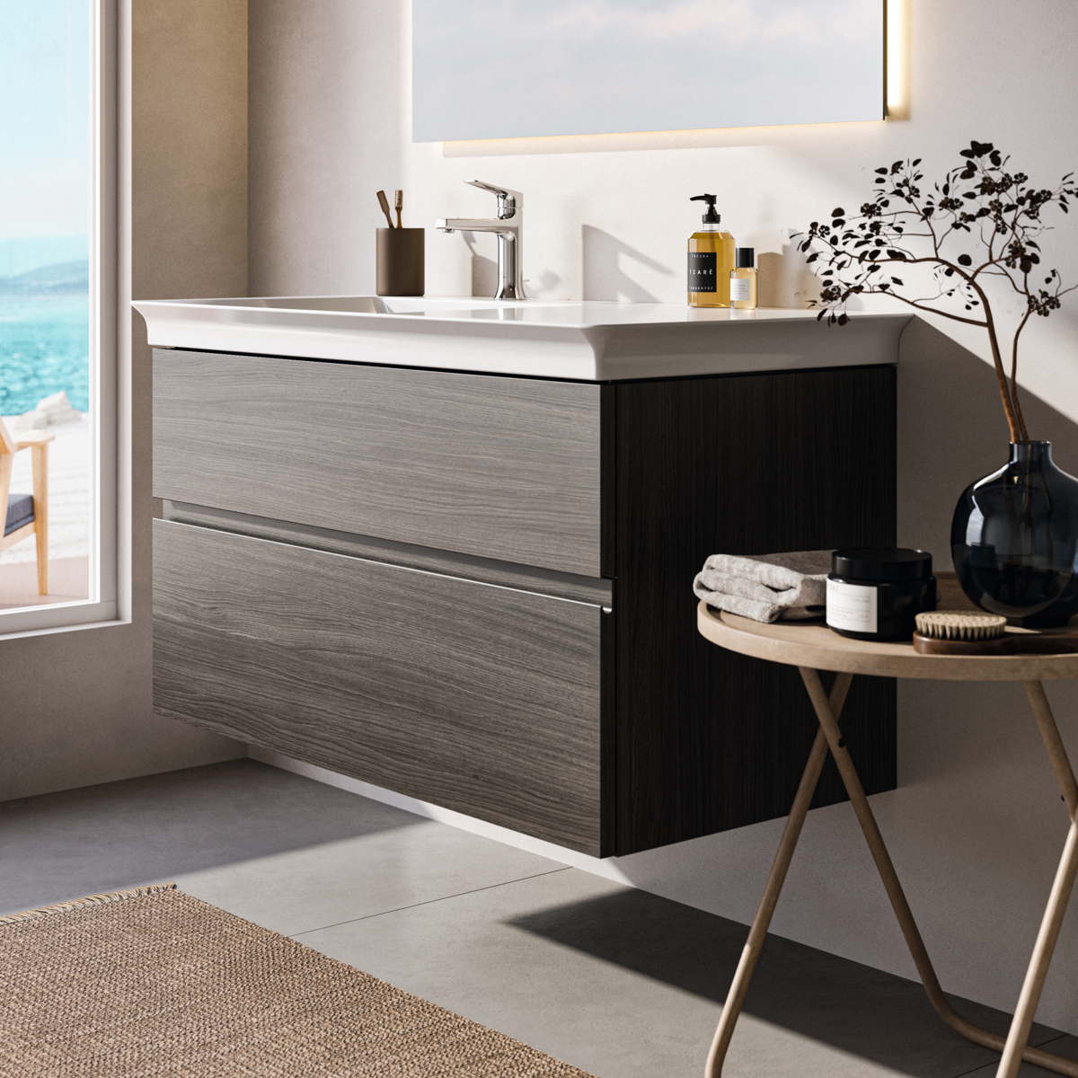 Модуль под раковину Finesse 100х50,5х55 см, левосторонний, темный вяз (натуральный шпон), Ideal Standard