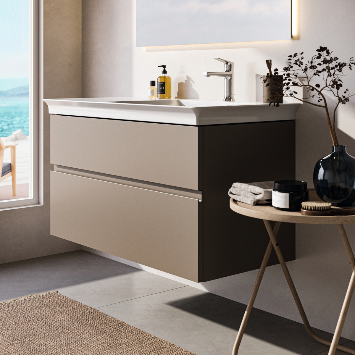 Модуль под раковину Finesse 100х50,5х55 см, правосторонний, серо-бежевый матовый, Ideal Standard