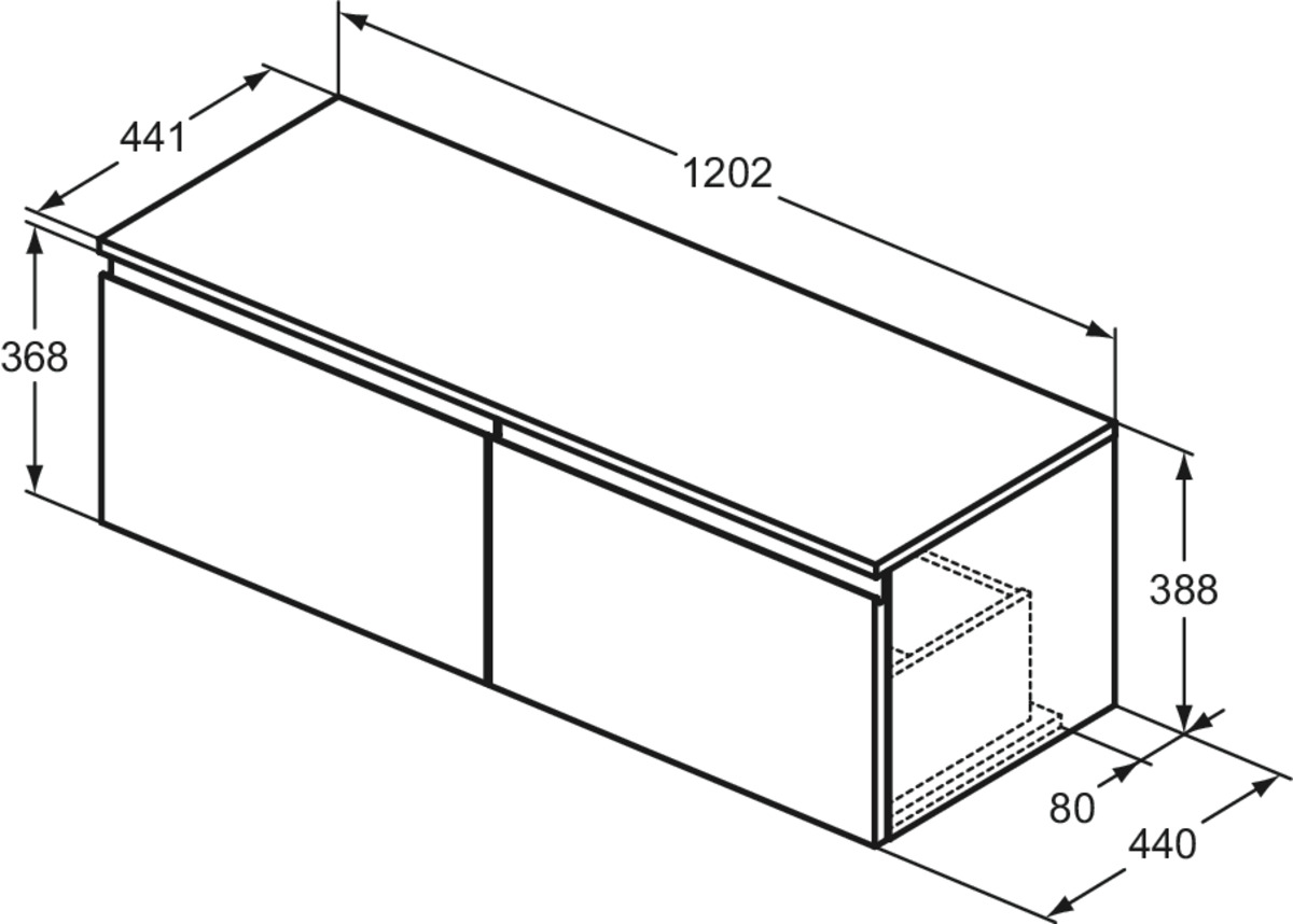 FINESSE Тумба со столешницей 120х44 см для подвесного монтажа, 2 ящика, система плавного закрытия. Конструкция без ручек - паз над ящиками для легкого открывания. C крепежом. Рекомендуется сифон Space Saving EE23033967 (заказывается дополнительно). Для монтажа с раковинами Linda-X 60 см T4988, T4990, T4989 / Linda-X 50 см T4985, T4987, T4986 / Conca 60 см T3818, T3822, T3823, T3825, T3819, T3824 / Conca 50 см T3812, T3814, T3815, T3817, T3813, T3816 / Conca 40 см T3876, T3877, T3878, T3879 / Extra 60 см T3889, T3891, T3890 / Extra 50 см T3884, T3886, T3885 / Extra 45 см T3917, T3918 / Extra 45 см T3920, T3921 / Extra 45 см T3923, T3924 / Strada II 60 см T3644 / Strada II 50 см T3643 / Linda-X T4399, T4400, T4401, T4402 / Ipalyss E1396, E1397, E1398, E1413 / Conca T3696, T3698 / Extra T3740, T3741 / La Dolce Vita E2717 / Strada II T2998, T2999, T2964, T2965, T2966, T2967, T2981, T3604, T2929, T2959, T2961, T2962, T2963 / Strada K0776, K0781, K0816, K0784, K0795 / Connect Air K0833, E0348 / I.Life B T5092, T5091, T5087