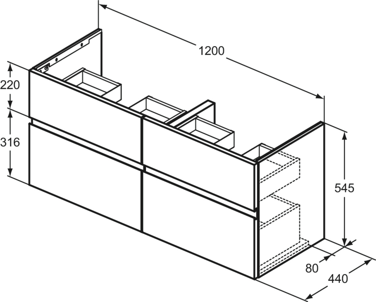 Модуль под раковину Finesse 120х44х54,5 см, 4 ящика, темный вяз (натуральный шпон), Ideal Standard