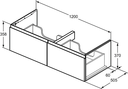 FINESSE Тумба для раковины 120х50 см для подвесного монтажа, 2 ящика (расположены рядом), система плавного закрытия. Конструкция без ручек - паз над ящиками для легкого открывания. C крепежом. Рекомендуется сифон Space Saving EE23033967 (заказывается дополнительно). Для монтажа с раковинами i.Life B Vanity 121 см T4602