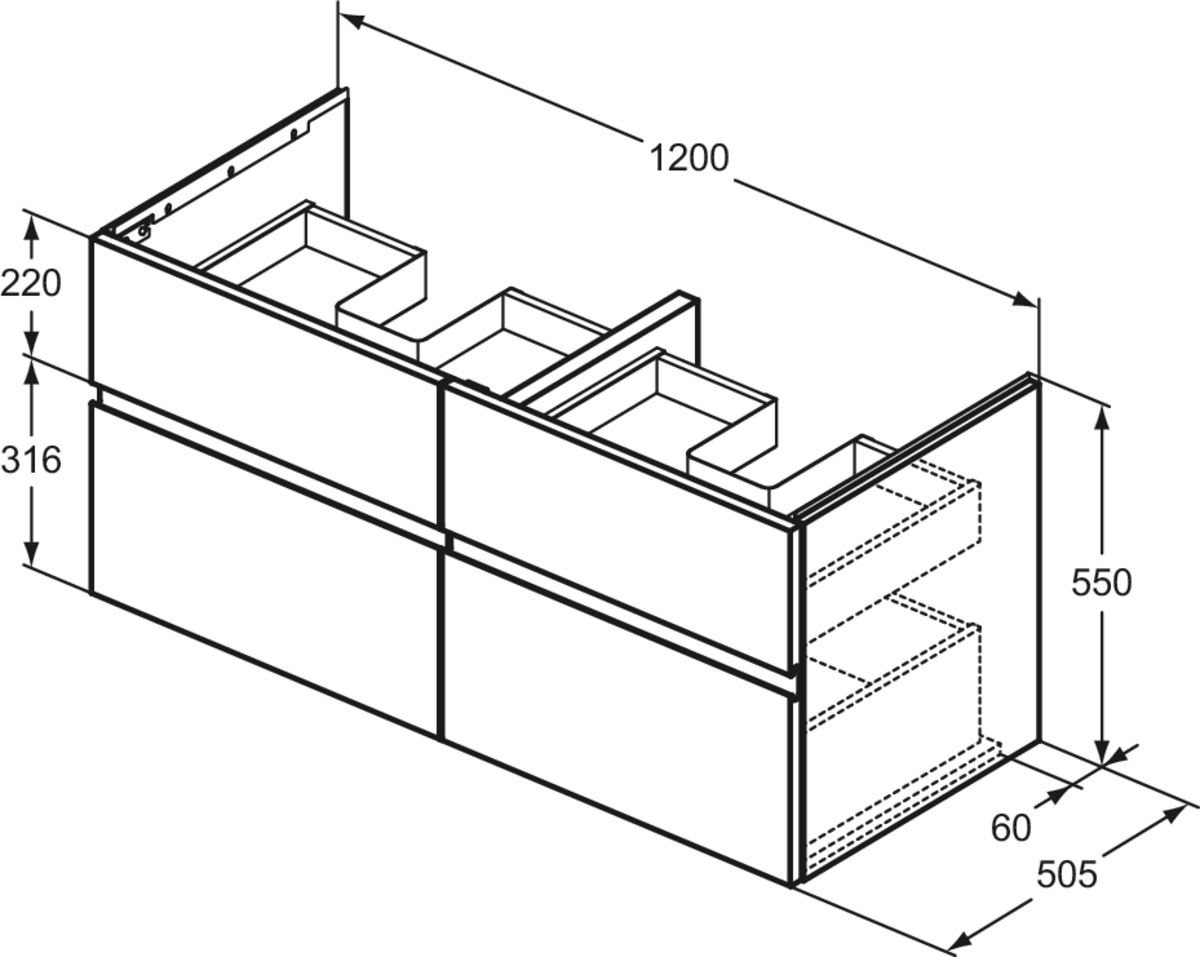 Модуль под раковину Finesse 120х50,5х55 см, 4 ящика, белый матовый (лак), Ideal Standard
