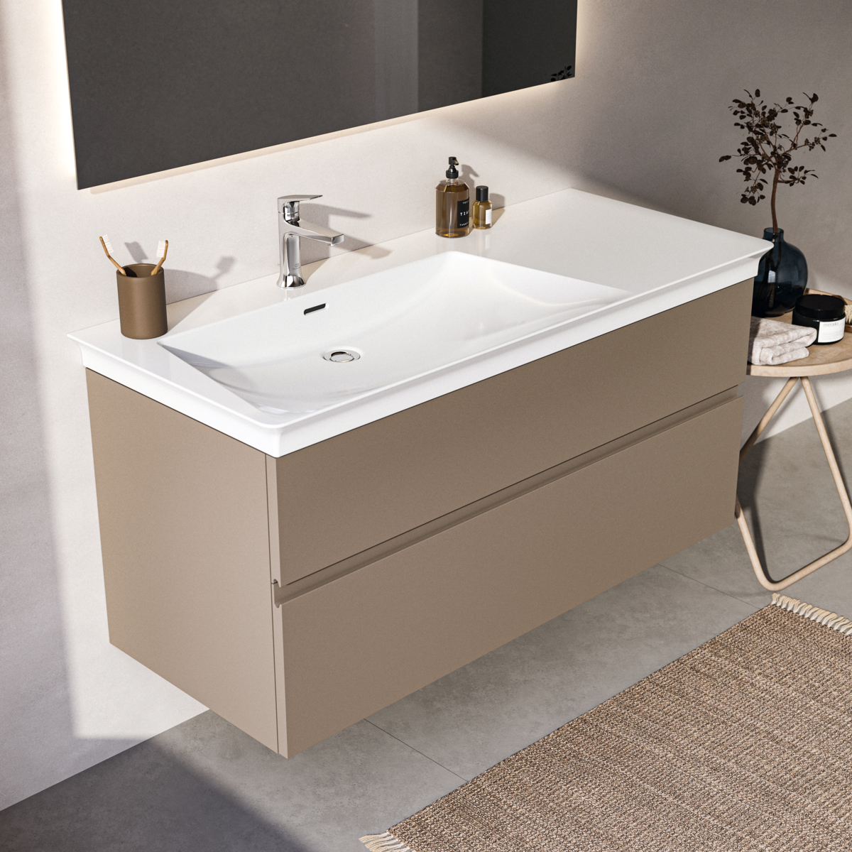 Модуль под раковину Finesse 120х50,5х55 см, левосторонний, серо-бежевый матовый, Ideal Standard