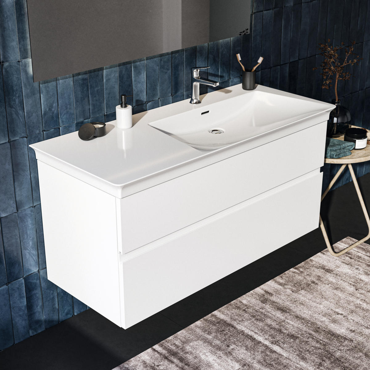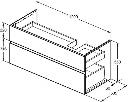 Модуль под раковину Finesse 120х50,5х55 см, правосторонний, белый матовый (лак), Ideal Standard