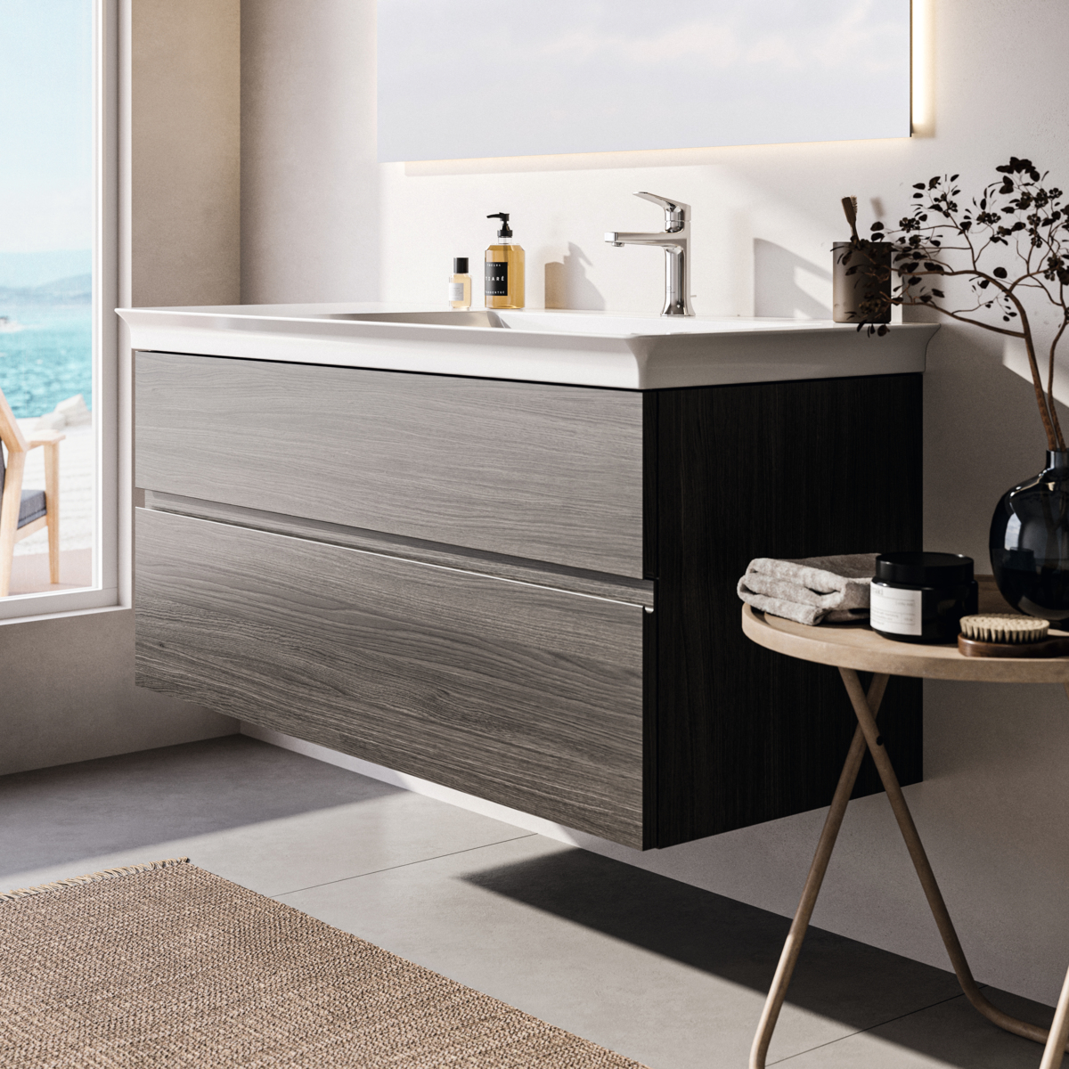 Модуль под раковину Finesse 120х50,5х55 см, правосторонний, темный вяз (натуральный шпон), Ideal Standard