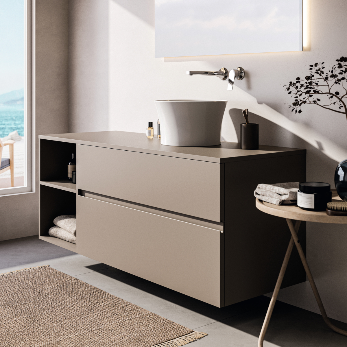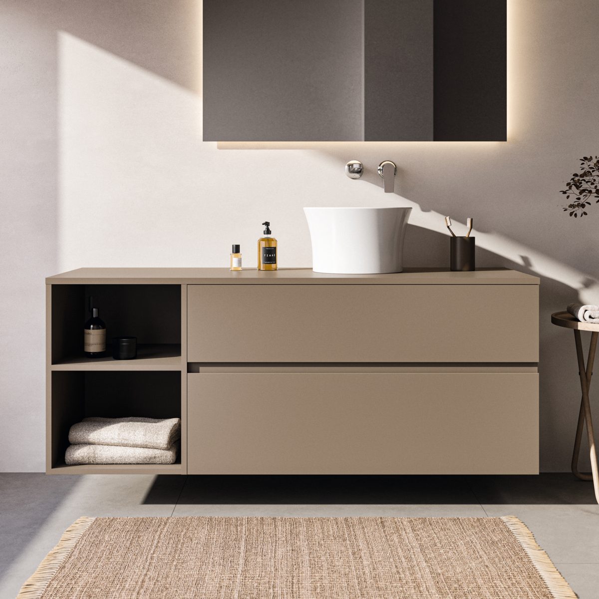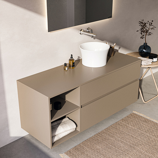 Модуль под раковину Finesse 140,2х50,5х55,8 см, открытая секция, со столешницей, серо-бежевый матовый, Ideal Standard