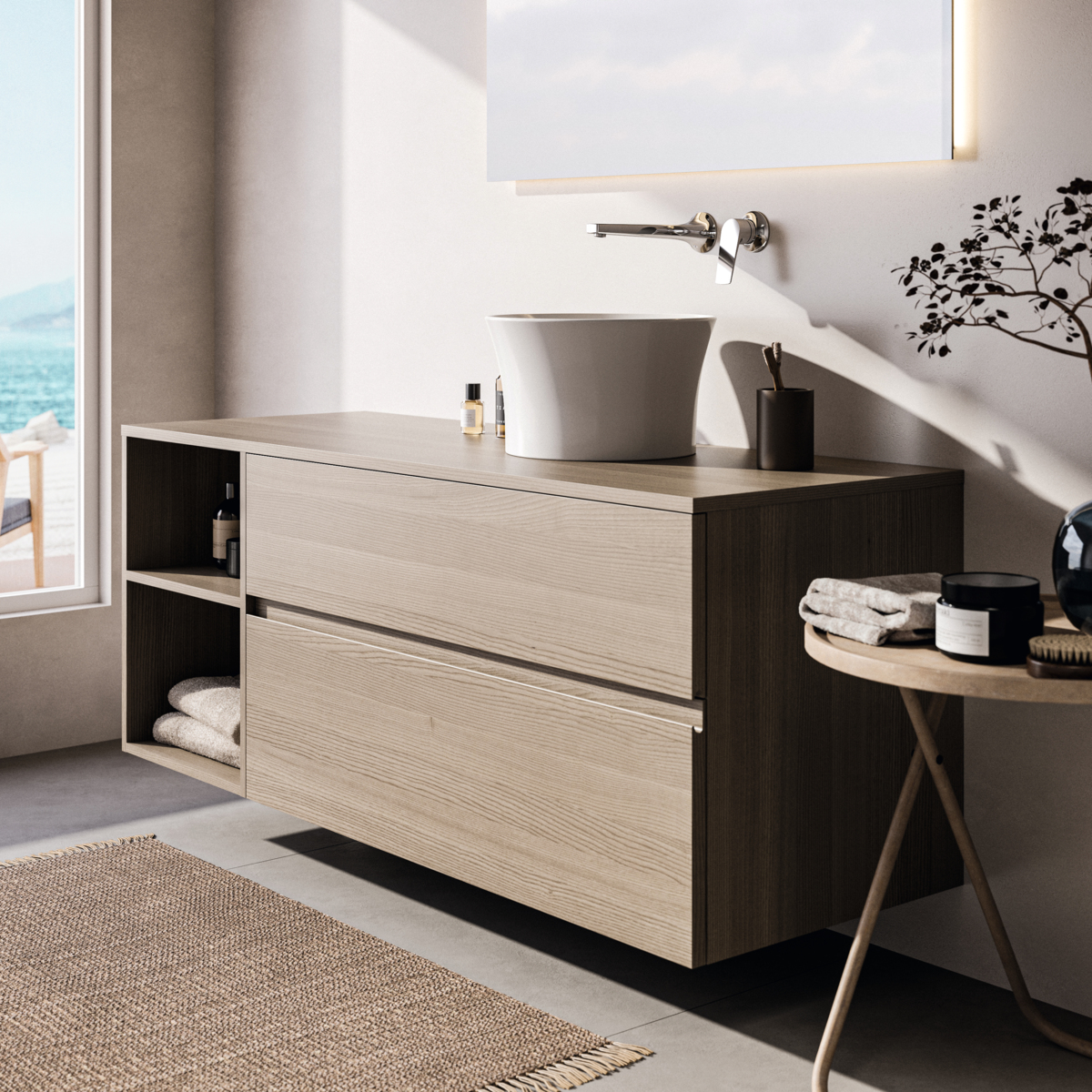 Модуль под раковину Finesse 140,2х50,5х55,8 см, открытая секция, со столешницей, светлый дуб (натуральный шпон), Ideal Standard