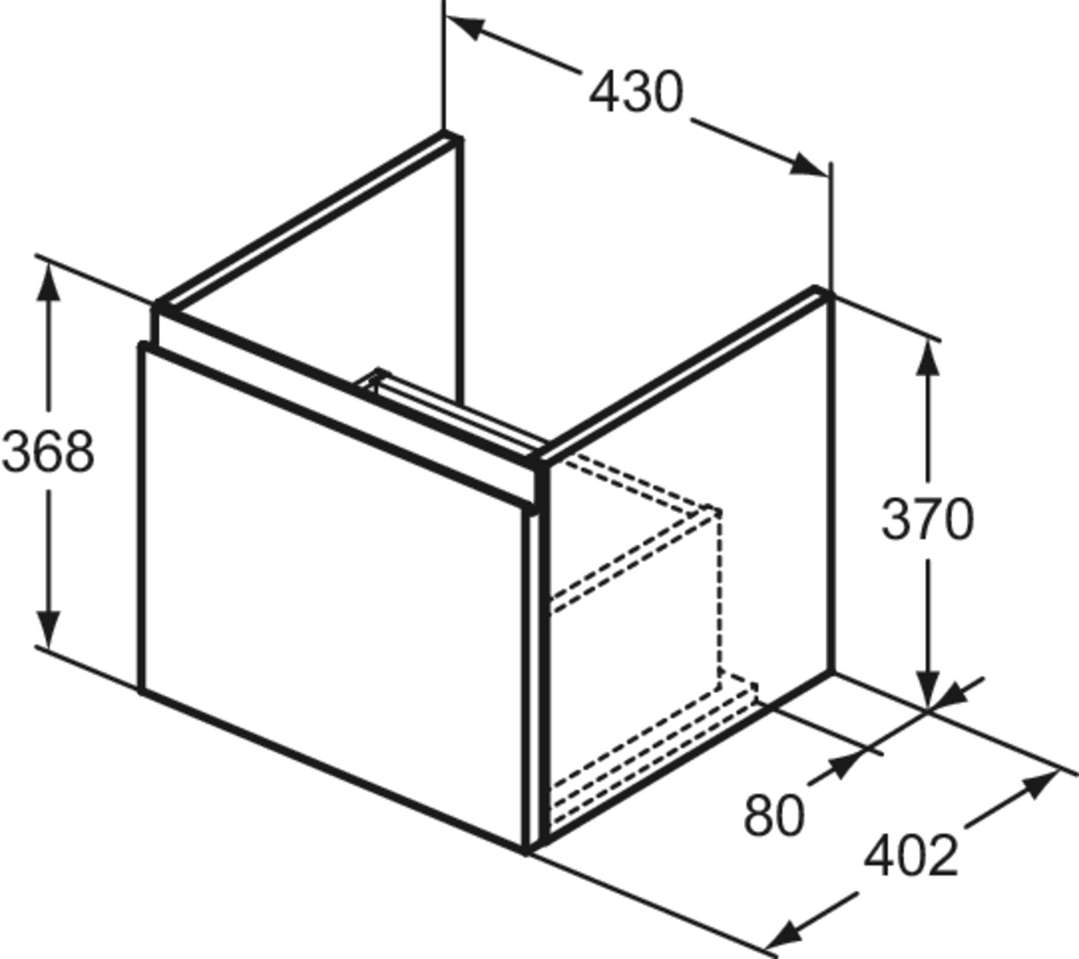 FINESSE Тумба для раковины 43 см для подвесного монтажа, 1 ящик, система плавного закрытия. Конструкция без ручек - паз над ящиком для легкого открывания. C крепежом. Рекомендуется сифон Space Saving EE23033967 (заказывается дополнительно). Для монтажа с раковиной Connect Air Cube 50 см E074601