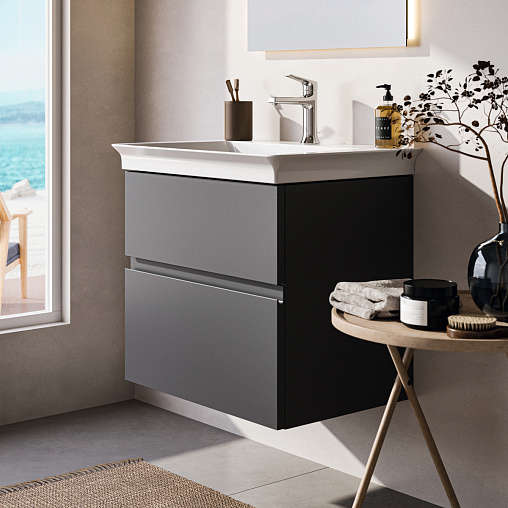 FINESSE Тумба для раковины 60х44 см для подвесного монтажа, 2 ящика, система плавного закрытия. Конструкция без ручек - паз под верхним и над нижним выдвижными ящиками для легкого открывания. C крепежом. Рекомендуется сифон Space Saving EE23033967 (заказывается дополнительно). Для монтажа с раковинами La Dolce Vita Symmetrical Vanity 66 см E2644, E2700, E2675 или Extra 60 см T3889, T3891, T3890 или Strada II Vanity 64 см T2991, T3633 или Connect Air Vanity 64 см или E0289 Tesi Vanity 62,5 см T3510 или I.Life A Vanity 64 см T4619 или Eurovit Vanity 61 см E0668
