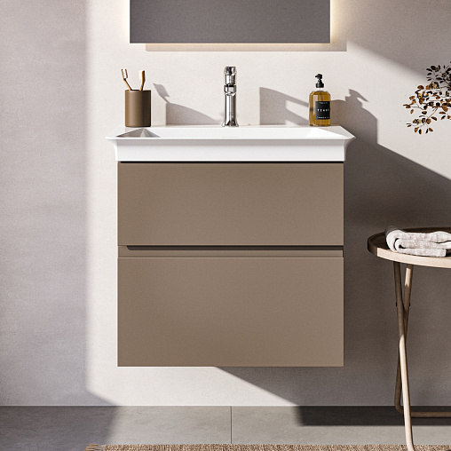 FINESSE Тумба для раковины 60х44 см для подвесного монтажа, 2 ящика, система плавного закрытия. Конструкция без ручек - паз под верхним и над нижним выдвижными ящиками для легкого открывания. C крепежом. Рекомендуется сифон Space Saving EE23033967 (заказывается дополнительно). Для монтажа с раковинами La Dolce Vita Symmetrical Vanity 66 см E2644, E2700, E2675 или Extra 60 см T3889, T3891, T3890 или Strada II Vanity 64 см T2991, T3633 или Connect Air Vanity 64 см или E0289 Tesi Vanity 62,5 см T3510 или I.Life A Vanity 64 см T4619 или Eurovit Vanity 61 см E0668