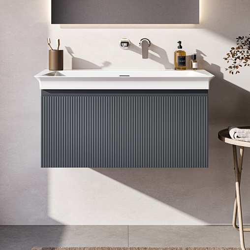 FINESSE Тумба для раковины 80х44 см для подвесного монтажа, 1 ящик, система плавного закрытия. Конструкция без ручек - паз над ящиком для легкого открывания. C крепежом. Рекомендуется сифон Space Saving EE23033967 (заказывается дополнительно). Для монтажа с раковинами La Dolce Vita Symmetrical Vanity 86 см E2629, E2701, E2676 или Extra 80 см T3899, T3901, T3900 или Connect Air Vanity 84 см E0279 или Tesi Vanity 82,5 см T3509 или I.Life A Vanity 84 см T4620 или Eurovit Vanity 81,5 см E0669