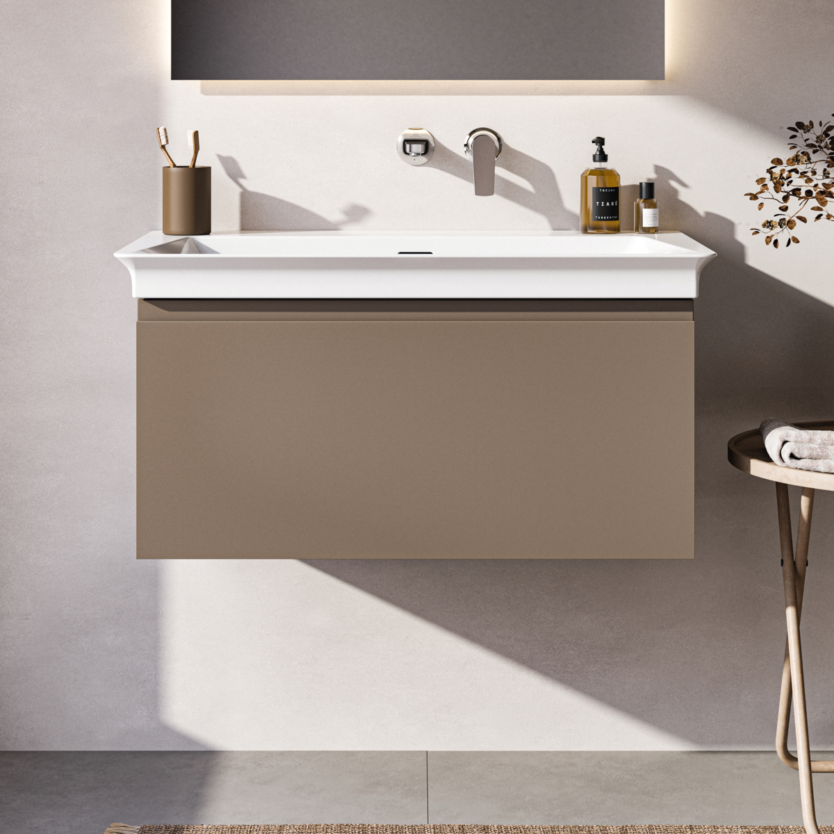 FINESSE Тумба для раковины 80х44 см для подвесного монтажа, 1 ящик, система плавного закрытия. Конструкция без ручек - паз над ящиком для легкого открывания. C крепежом. Рекомендуется сифон Space Saving EE23033967 (заказывается дополнительно). Для монтажа с раковинами La Dolce Vita Symmetrical Vanity 86 см E2629, E2701, E2676 или Extra 80 см T3899, T3901, T3900 или Connect Air Vanity 84 см E0279 или Tesi Vanity 82,5 см T3509 или I.Life A Vanity 84 см T4620 или Eurovit Vanity 81,5 см E0669