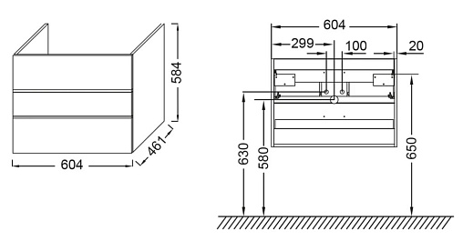 Модуль под раковину Lucien 60х46х58,4 см, цвет белый лак/дуб корбридж, система push-to-open, Jacob Delafon