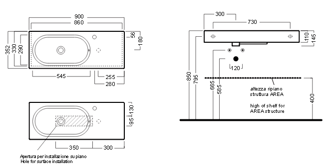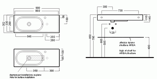 Area 90х35,2х14,5см, накладная раковина, санфаянс, арт. YXEQ01, Hatria