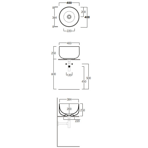 Накладная раковина Balloon 40х40х25 см, санфарфор, Simas