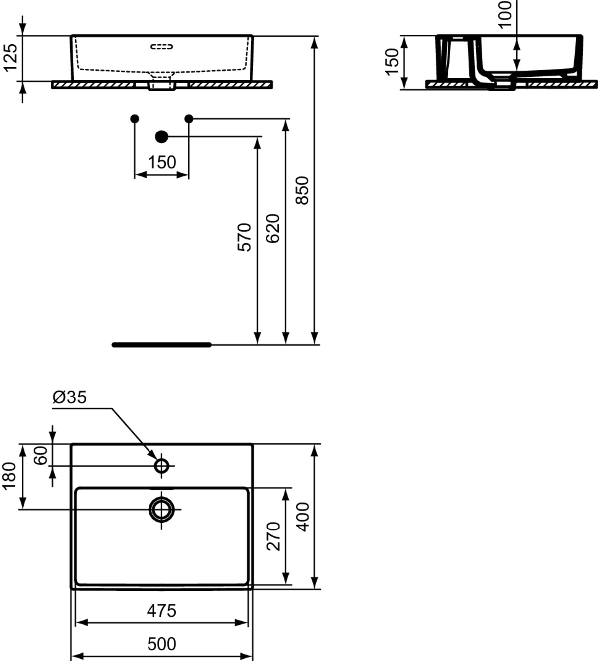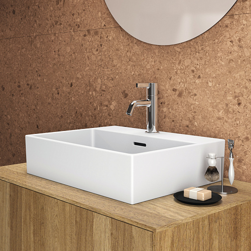 EXTRA Прямоугольная раковина-чаша 50 см с отверстием под смеситель, с отверстием перелива, с крепежом D570967