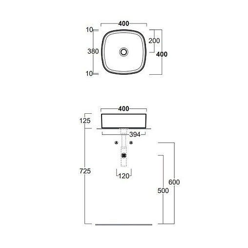 Накладная раковина Foriu 40х40х12,5 см, санфарфор, Simas