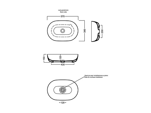 Эта накладная раковина имеет овальную форму и размеры 57 x 38 x 15 см. Она идеально подойдет для тех, кто ищет компактную и стильную раковину.