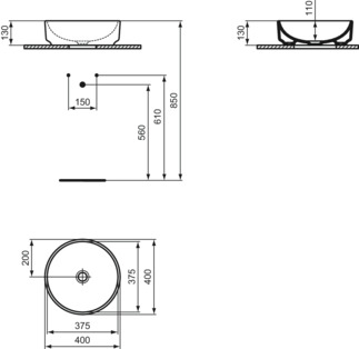 Накладная раковина I.LIFE O 40х40х13 см, санфарфор, Ideal Standard