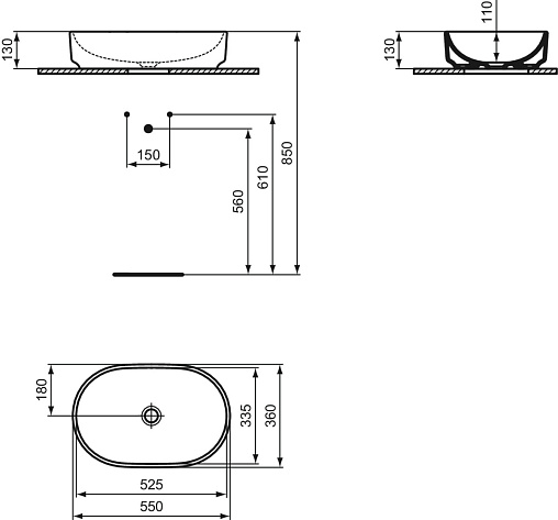 Накладная раковина I.LIFE O 55х36х13 см, санфарфор, Ideal Standard