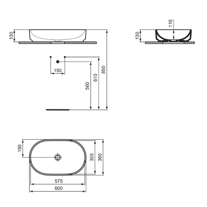 I.LIFE O 60х38х13см, накладная раковина, санфарфор, арт. T573101, Ideal Standard
