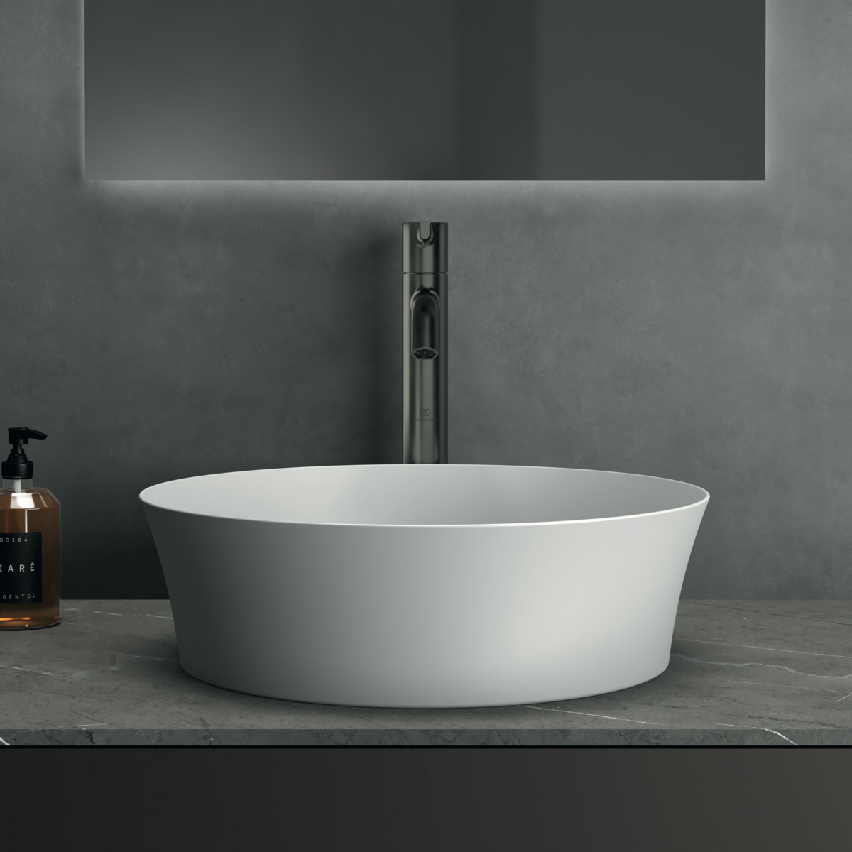 IPALYSS Vessel Круглая раковина-чаша с тонкими стенками - 40 см, технология Diamatec®, без отверстия под смеситель, без отверстия перелива, с крепежом D570967 и монтажным шаблоном.