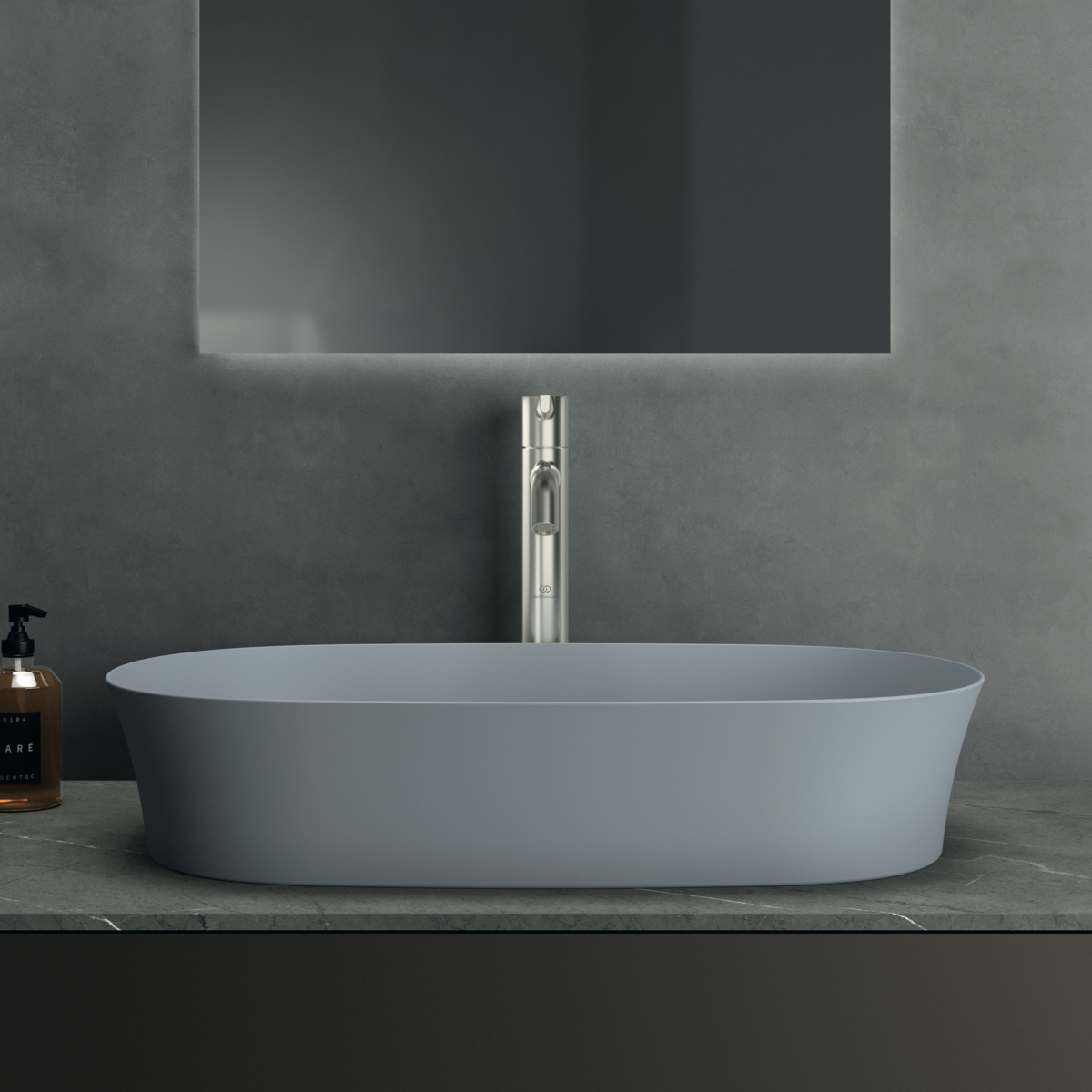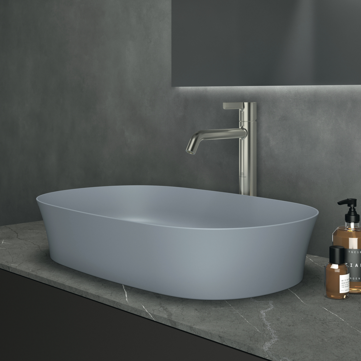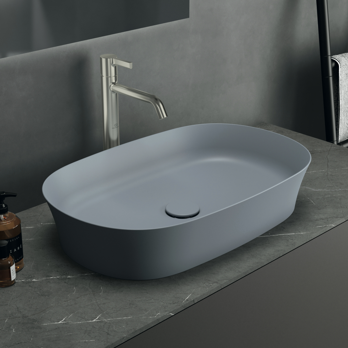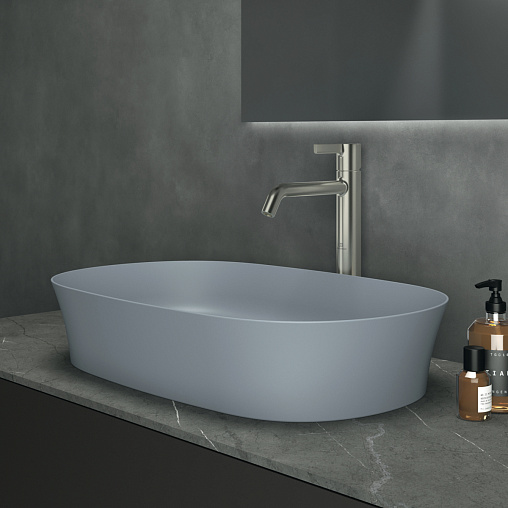Накладная раковина Ipalyss 60х38х12 см, технология Diamatec®, цвет порох, санфарфор, синий матовый, Ideal Standard