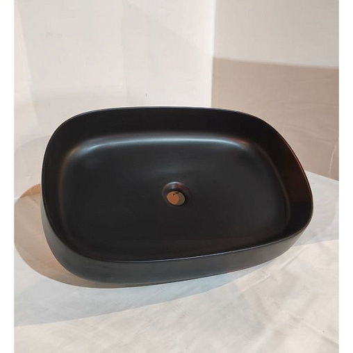 White Ceramic Jumper, накладная прямоугольная раковина 60x40x13h см, цвет черный матовый