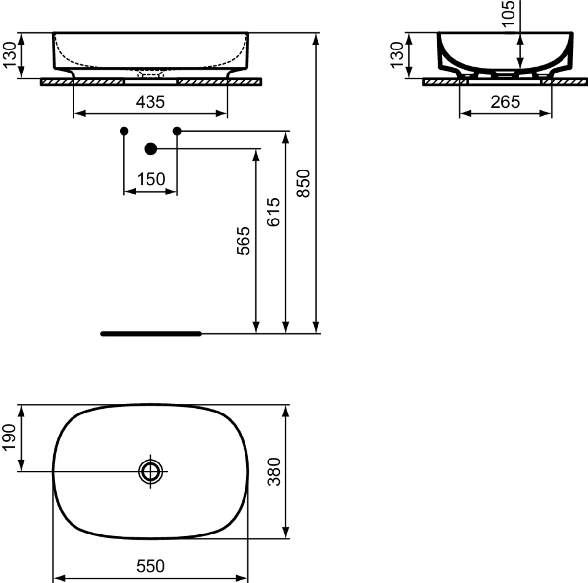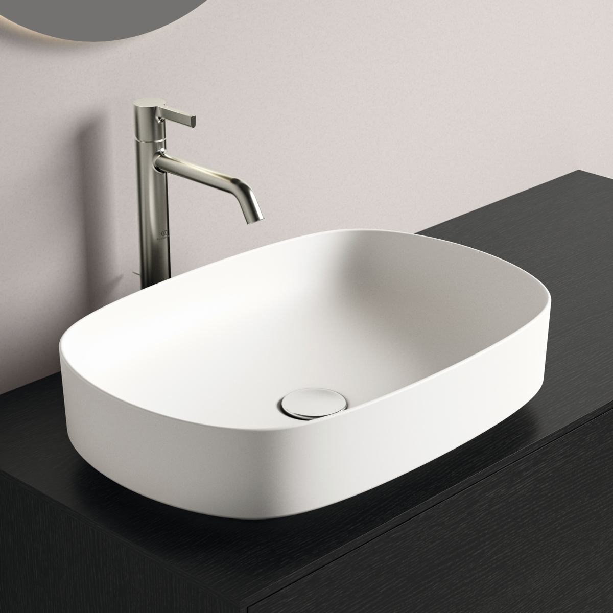 Накладная раковина Linda-X 55х38х13 см, без отверстия перелива, технология Diamatec®, санфарфор, белый матовый, Ideal Standard