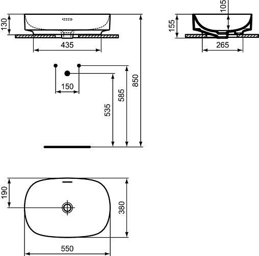 Накладная раковина Linda-X 55х38х15,5 см, санфарфор, белый матовый, Ideal Standard