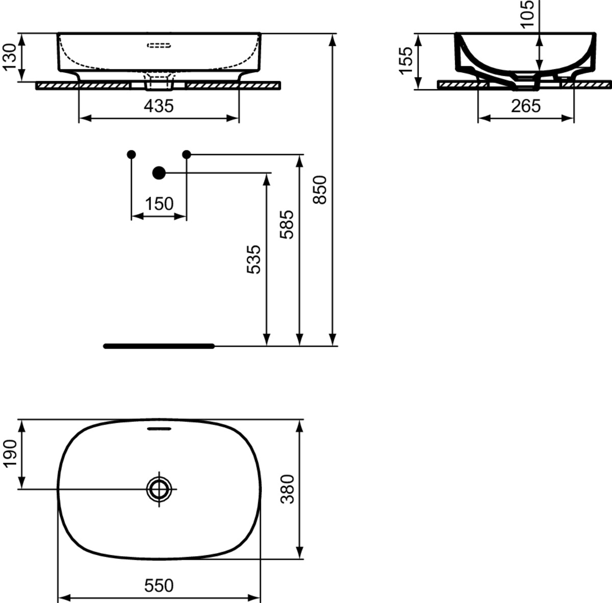 Накладная раковина Linda-X 55х38х15,5 см, санфарфор, белый матовый, Ideal Standard