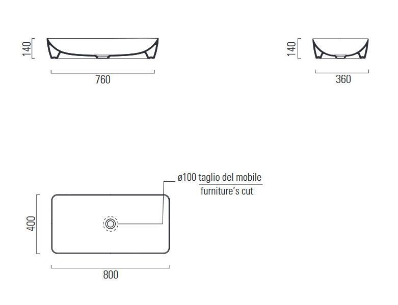 Nubes 80х40х14см, накладная раковина, санфарфор, арт. 904011, GSI