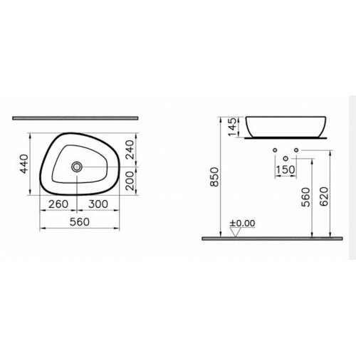 Outline 56х44х14,5см, накладная раковина, санфарфор, арт. 5991B403-0016, Vitra