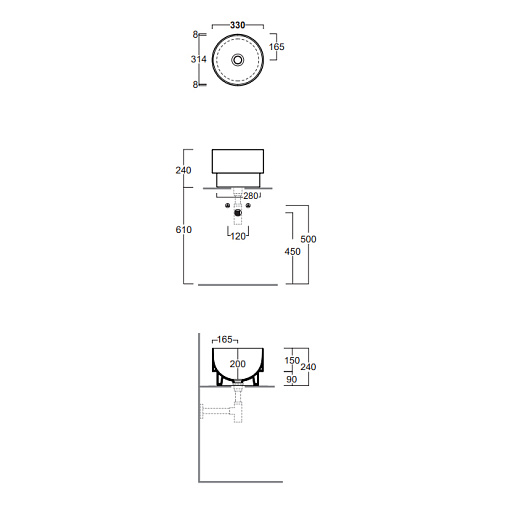 Накладная раковина PO-MO 33х33х24 см, санфарфор, Simas