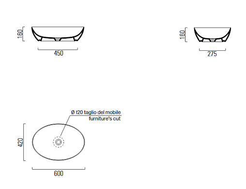 Накладная раковина Pura 60х42х16 см, санфарфор, розовый матовый, GSI