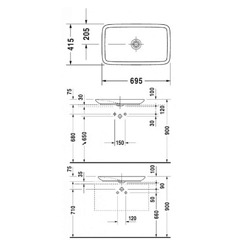 PuraVida 70х42х10см, накладная раковина, санфарфор, арт. 0370700000, Duravit