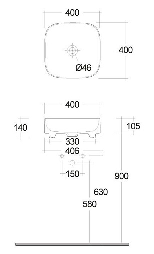 Resa 40х40х10,5см, накладная раковина, санфарфор, арт. 58CW3043, Kludi