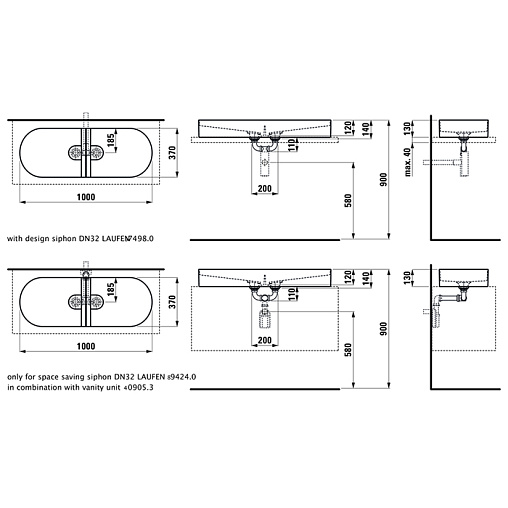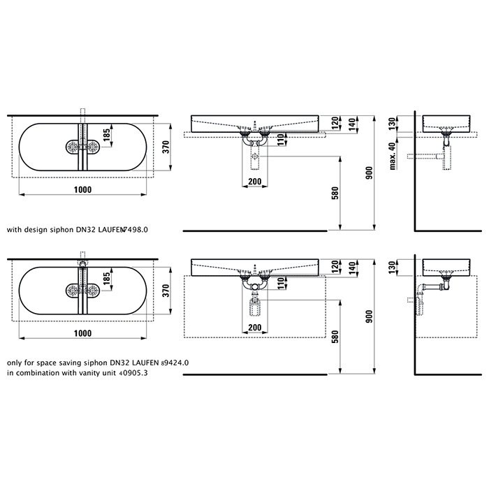Накладная раковина Sonar 100х37х12 см, санфарфор, белый матовый, Laufen