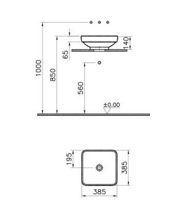 Накладная раковина W.Jewels 38,5х38,5х14 см, санфарфор, Vitra