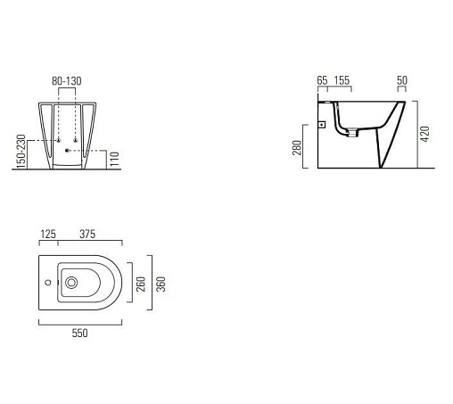 Биде Kube-x 36х55 см, напольное, без крышки, GSI