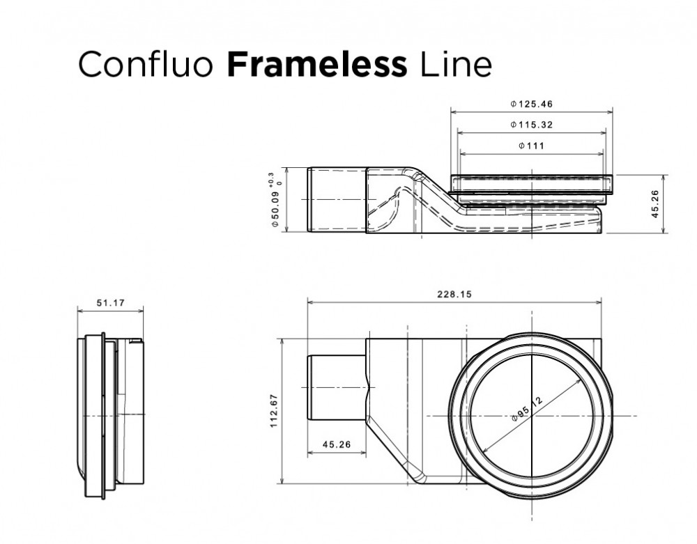 Дренажный желоб Confluo Frameless Line 85х6,2 см, чёрное матовый, сифон с горизонт. выпуском, с решеткой, Pestan