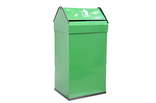 Зеленый контейнер для мусора металлический из окрашенной стали объёмом 41 литр можно заказать в любом цвете и с вашей символикой, для этого вам потребуется обратиться к официальному дистрибьютору Nofer в России.