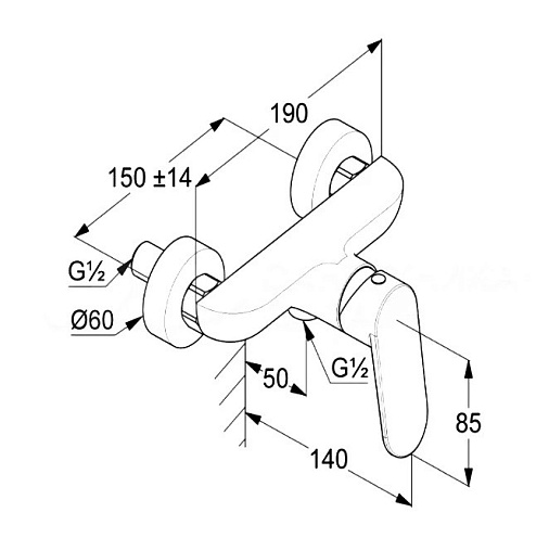 Настенный смеситель без излива X1 матовый, чёрный цвет, без лейки, Kludi