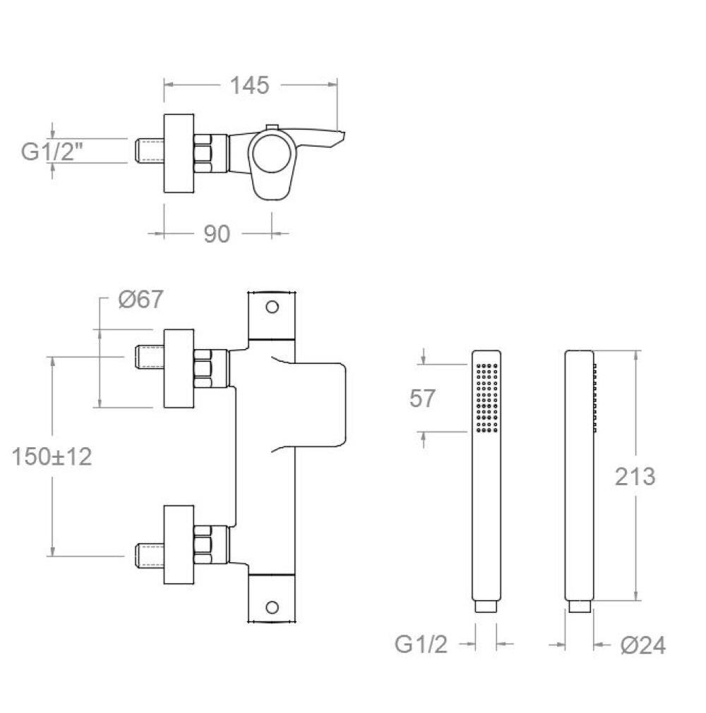 В комплекте душевая лейка с одной функцией, кронштейн для душа, шланг душевой.