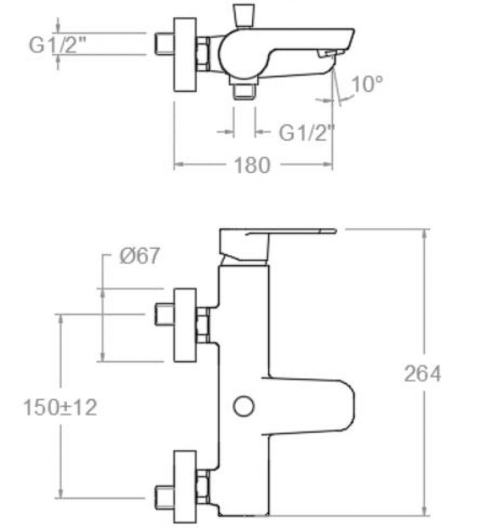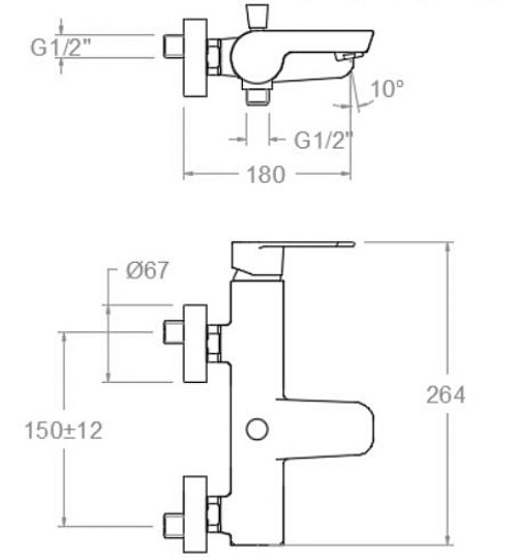 Настенный смеситель Alexia неповоротный излив, с выходом на душ (без лейки), никель, Ramon Soler