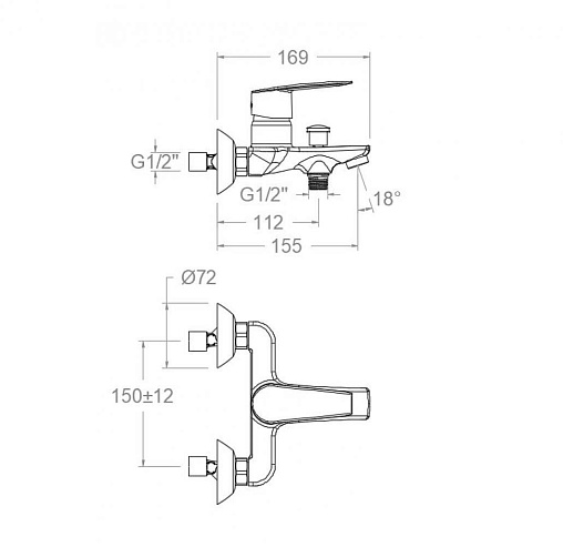 Настенный смеситель CIVIC неповоротный излив, с выходом на душ (без лейки), Ramon Soler