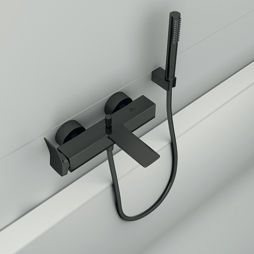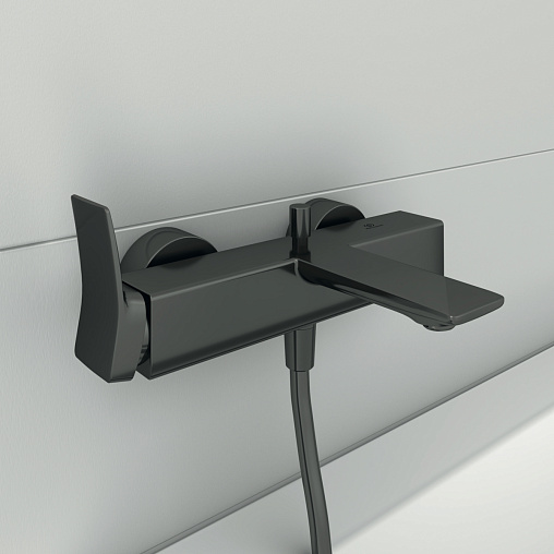 Настенный смеситель Conca матовый, неповоротный излив, с выходом на душ (без лейки), чёрный цвет, Ideal Standard