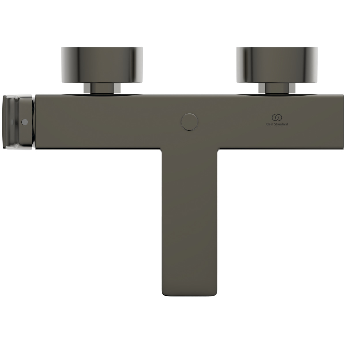 CONCA Настенный смеситель для ванны/душа, керамический картридж FirmaFlow 38 мм, с функцией HWTC (ограничение максимальной температуры горячей воды), без функции CLICK, логотип Ideal Standard на корпусе, металлическая рукоятка без индикаторов горячей/холодной воды, обратный клапан, эксцентрики с шумопонижателем, аэратор Coin slot M24x1, автоматическое переключение. Цветное покрытие - технология PVD