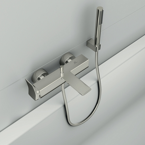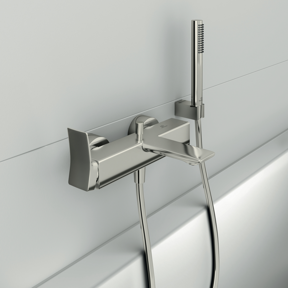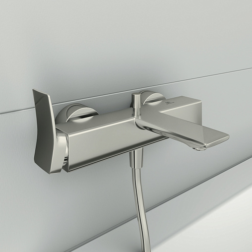 Настенный смеситель Conca неповоротный излив, с выходом на душ (без лейки), стальной цвет, Ideal Standard