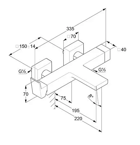 Настенный смеситель Decus неповоротный излив, с выходом на душ (без лейки), Kludi
